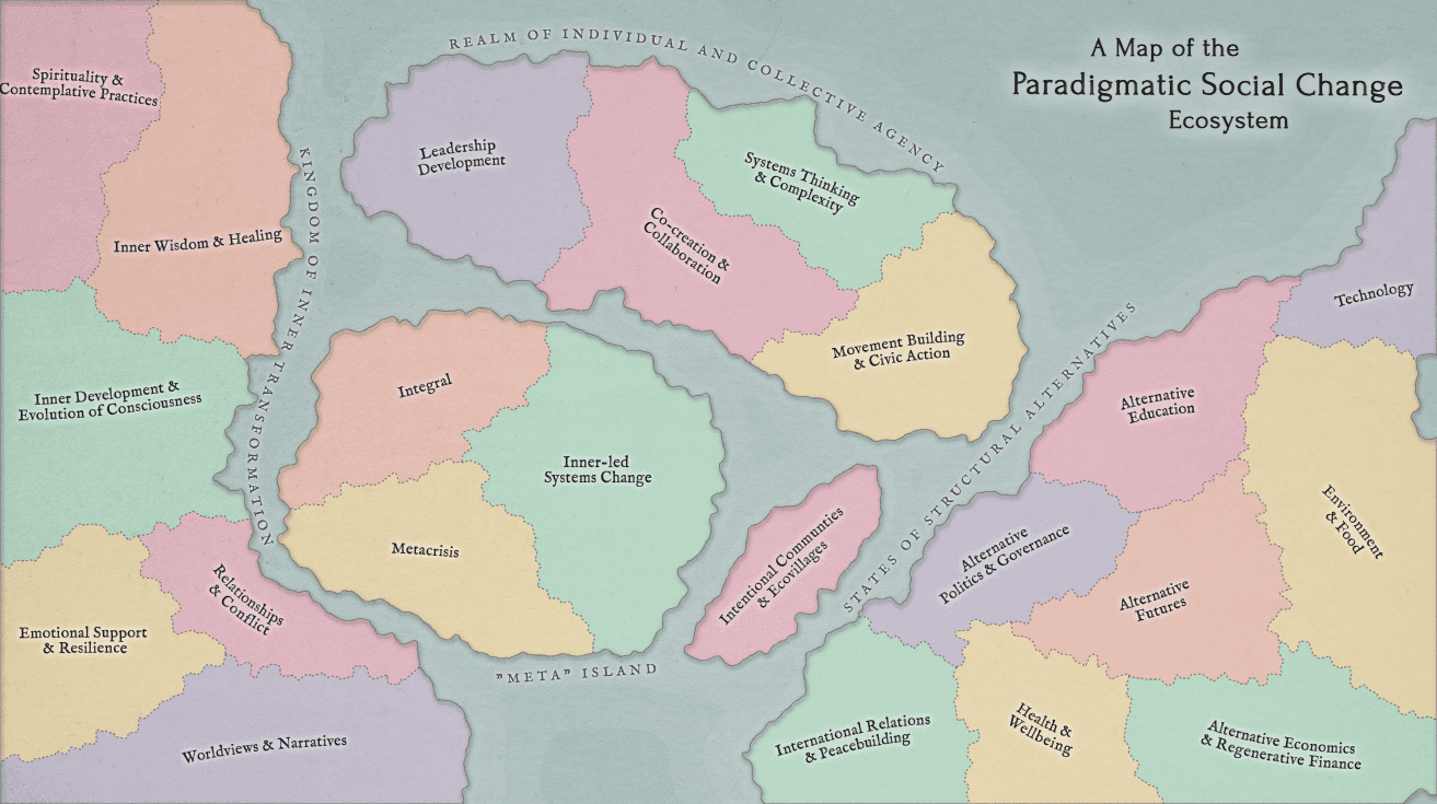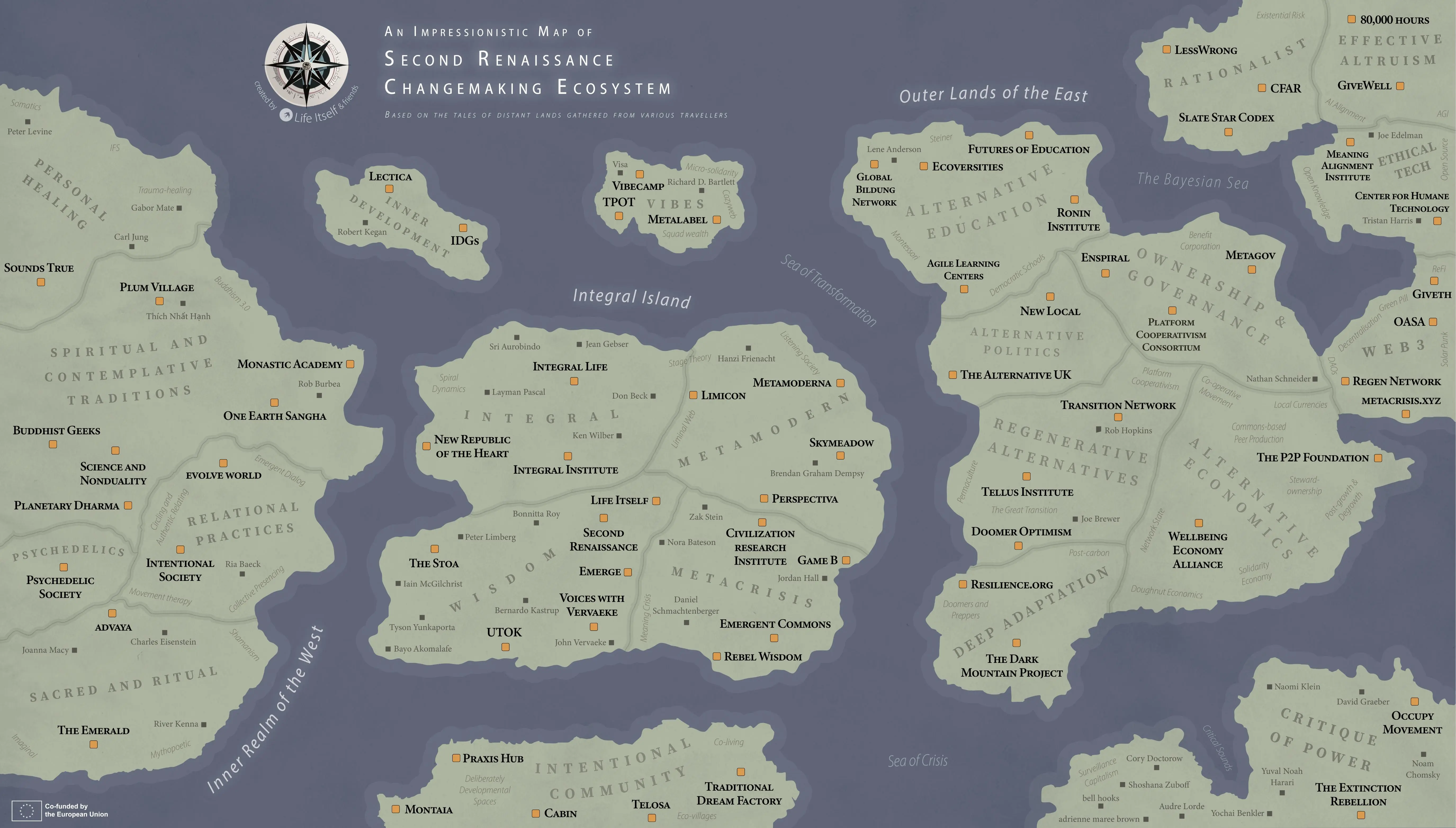 An impressionistic map of the second renaissance "paradigmatic changemakers" ecosystem. It shows some of the different communities, movements and spaces (primarily in the Global North) that aspire to and/or act to foster paradigmatic change with a second renaissance perspective Read more »