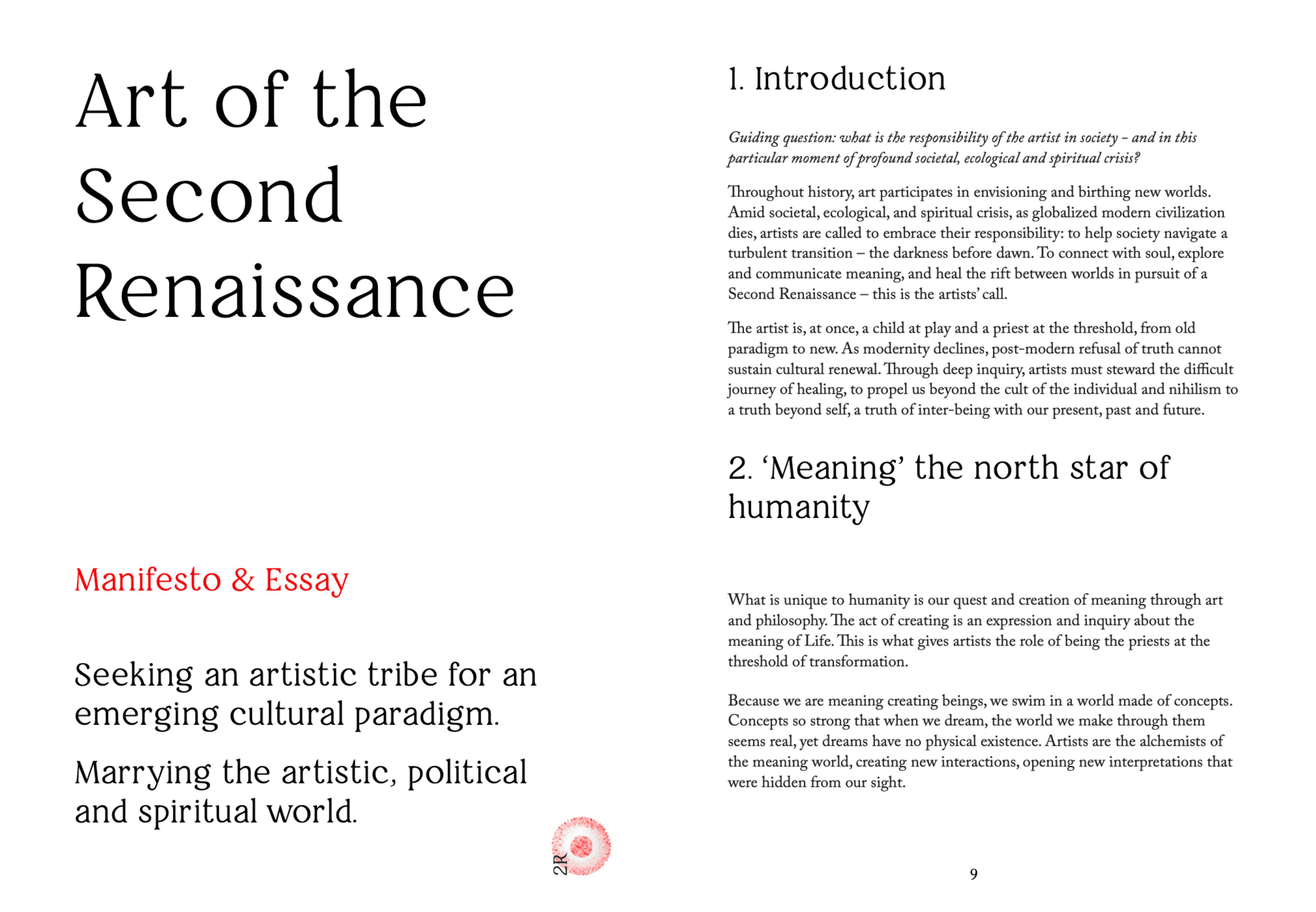 This manifesto essay marks the beginning of the Second Renaissance Art Collective. It lays out our vision and principles, setting the stage for what we hope will be a new artistic tribe and movement.